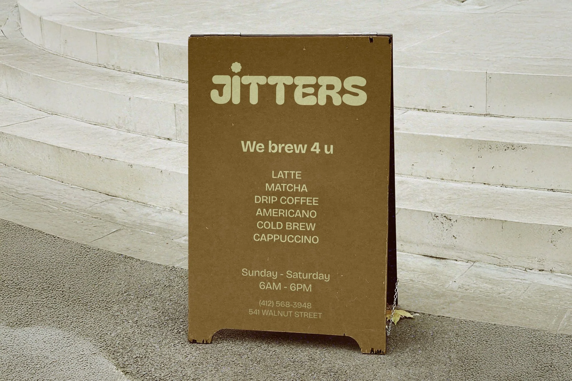 A local coffee café that is a bustling hub for young students and locals alike. Offering a wide variety of beverages, along with seasonal specialty drinks to spice things up. A friendly contemporary typeface logo and brand mark, showcasing Jitter’s unique spunk, and the selected brand color creates a more engaging environment.